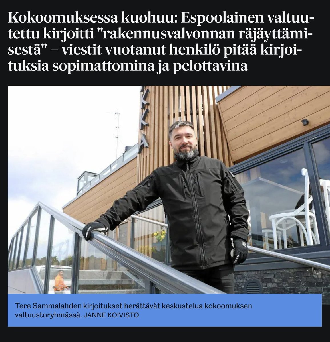 Espoon hitaan kaavoituksen ja mielivaltaisen rakennusvalvonnan takia moni rakentaja välttelee Espoota ja rakentamisen hinta kaupungissamme on tarpeettoman korkea. Molempien palveluiden toiminta on auditoitava ja parannettava vaikka YT-menettelyn kautta.