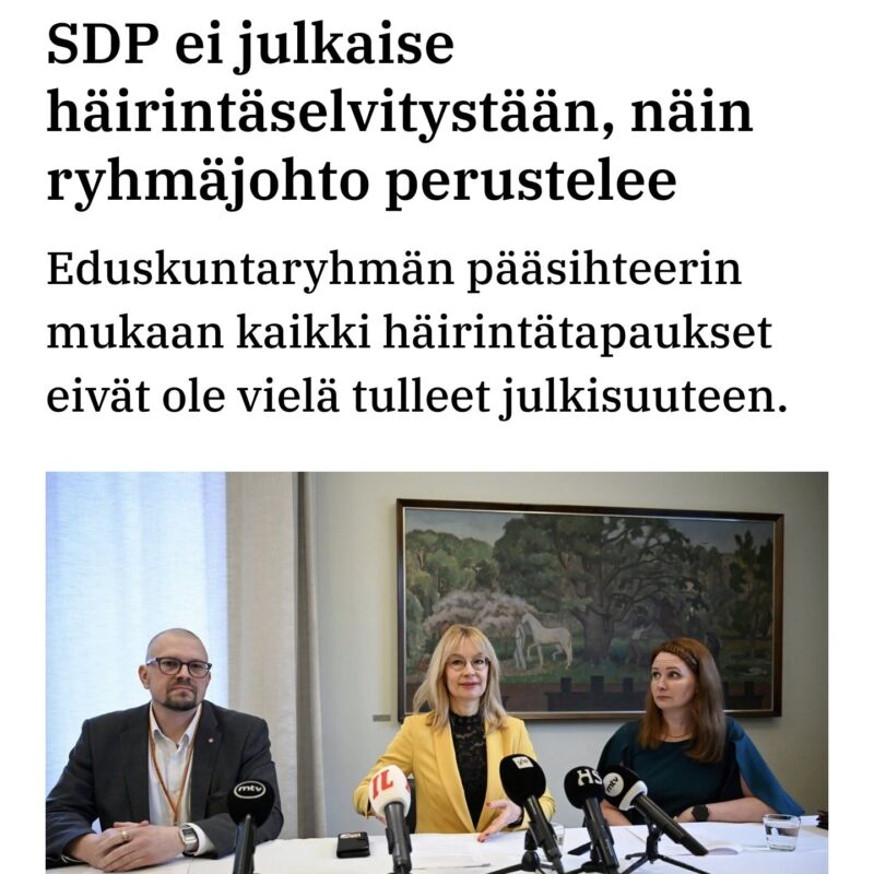 6.10.2024 Iltalehti: Hallituksesta kritiikkiä opposition vesiväitteille: ”Ei häirinnyt edellistä hallitusta”